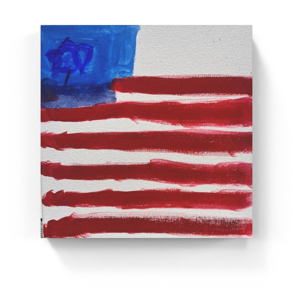 Brave Stripes is Eugene’s expressive take on the American flag, with bold red stripes brushed across a bright white canvas and a deep blue square in the corner holding a loose, hand-painted star. The slightly uneven, textured strokes give the flag a human, heartfelt feel, more like a flag waving in the wind than a perfectly printed design. The classic red, white, and blue palette makes this piece perfect for anyone who loves patriotic art with personality.